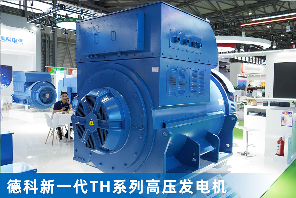 壹号娱乐官网新一代TH系列高压发电机,采用绝缘式后端盖(已申请专利),驱动端采用接地碳刷结构,双防护可有效消除轴电流;定子高压线圈采用防电晕设计,确保线圈绝缘的使用寿命,发电机空载波形畸变率小于2%,电话谐波因数小于1%,电话干扰系数小于50D,单机功率可达5000Kw ,最高效率为97.2%,是专门为配套燃气轮机和螺杆机(余热发电)而生产的电站专用新产品。